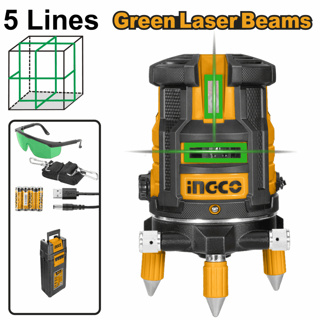 Nível A Laser 5 Linhas Verdes (1 Horizontal E 4 Verticais) Ingco HLL305205