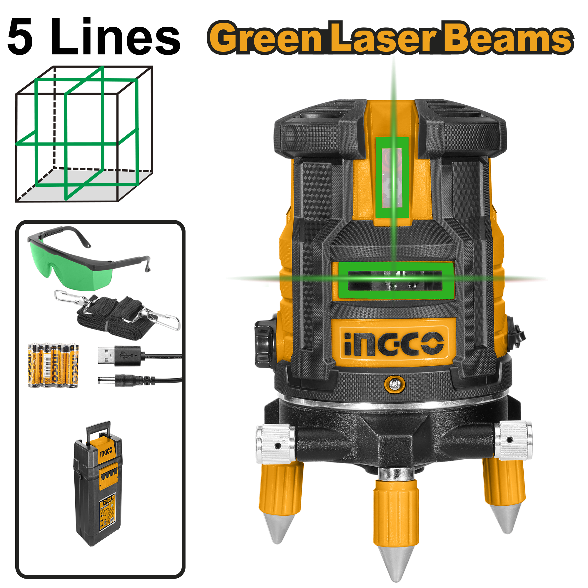 Nível A Laser 5 Linhas Verdes (1 Horizontal E 4 Verticais) Ingco HLL305205
